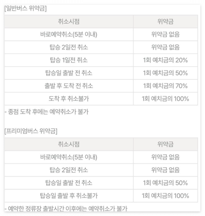 - 예약 후 5분 이내 예약취소시 위약금은 부과되지 않습니다.
