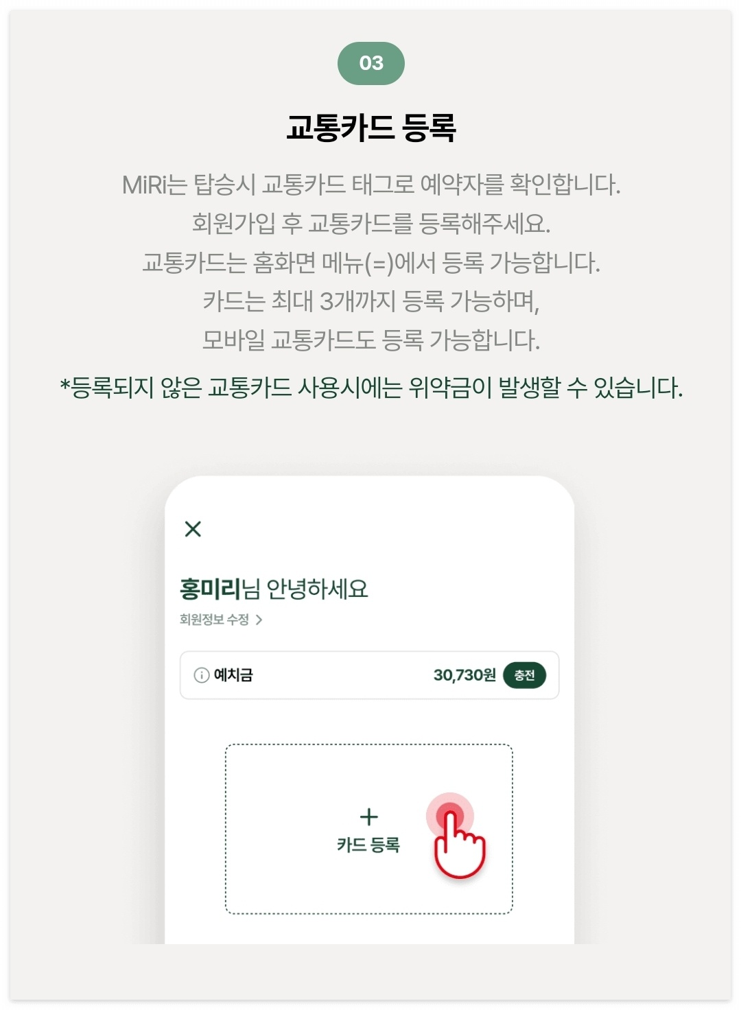 - 반드시 등록된 교통카드를 태그해 주셔야 합니다.